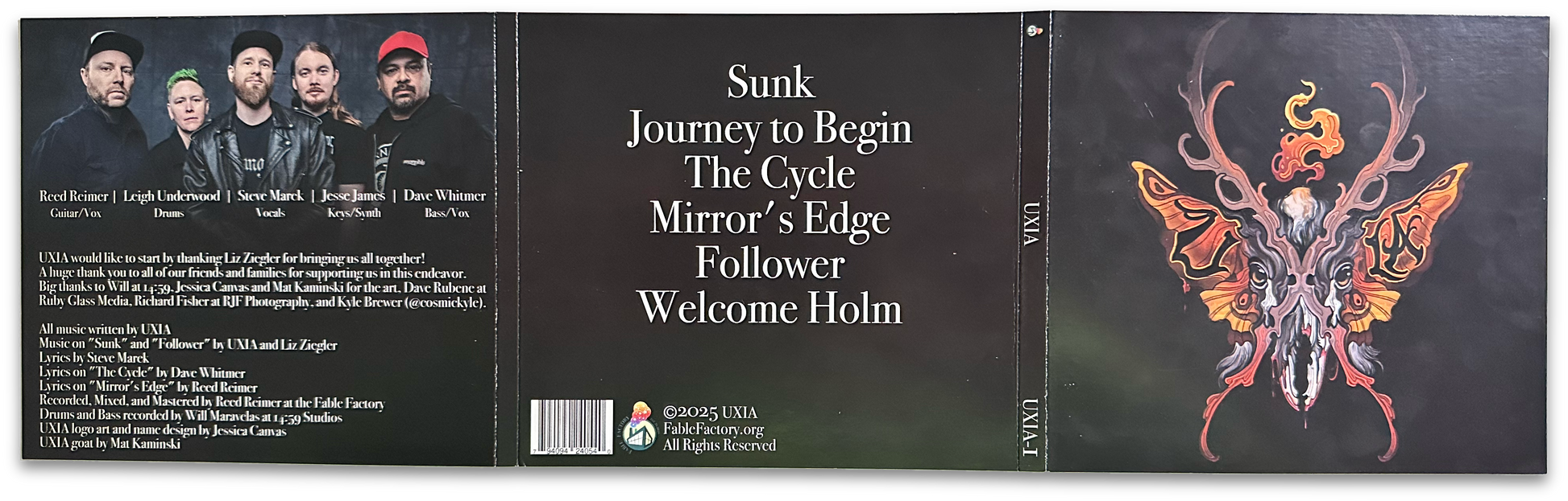 UXIA formed in 2023 upon a split of the band Portentum. Leigh, Reed, and Liz Ziegler (keys and vocals) brought aboard Dave to play bass, and shortly after Liz replaced herself with Jesse. Not long after, Dave had Steve audition for vocals, and the rest is modern history.